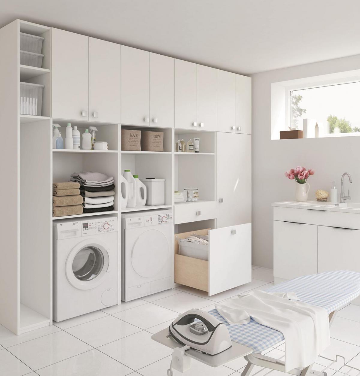 Nous entrons sur une pièce de vie de 40 m² avec la cuisine ouverte sur salon séjour et disposant de son cellier attenant.