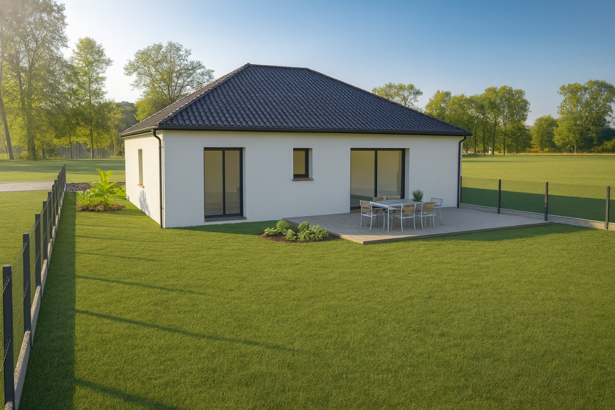 Terrain proposé par un partenaire foncier selon disponibilité. Projet de construction réalisé avec Habitat Concept dans le cadre d’un CCMI. Visuels non contractuels. Prix indicatif, taxes d’urbanisme, aménagements extérieurs et peintures. Éligibilité au PTZ sous conditions. Garanties constructeur incluses : garantie de livraison, garantie de parfait achèvement, garantie biennale et garantie décennale.