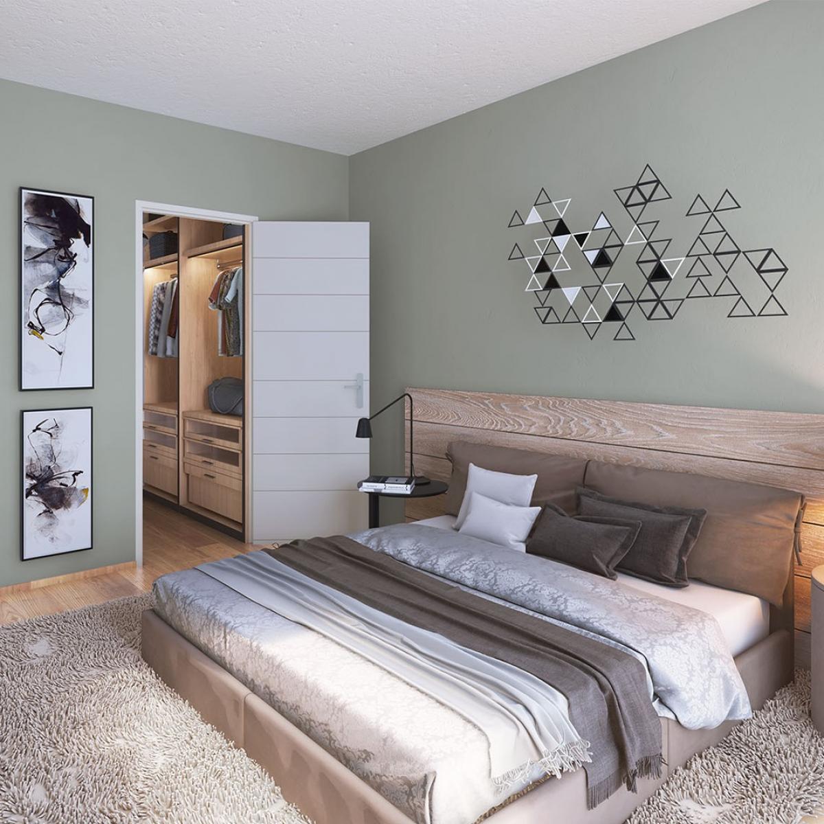 L’espace nuit offre des chambres confortables, une salle de bains fonctionnelle et des rangements optimisés.